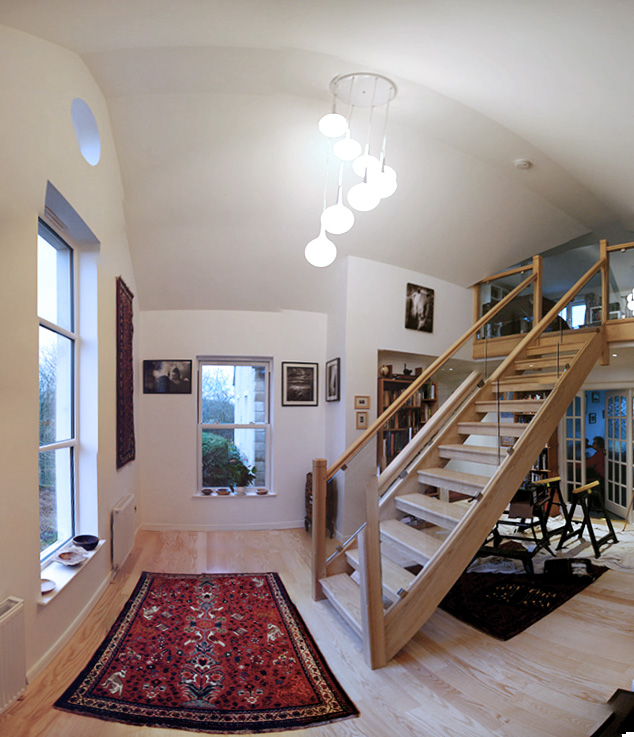 In Bemersyde, the stunning views across the Borders countryside inspired our clients to take action. cb3 design were commissioned to convert the attic into a ‘Room with a View’ in the form of flexible living space. The opportunity was also taken to address the lack of an appropriate entrance to the home – a double height entrance hall has been formed which better suits the scale of the property.